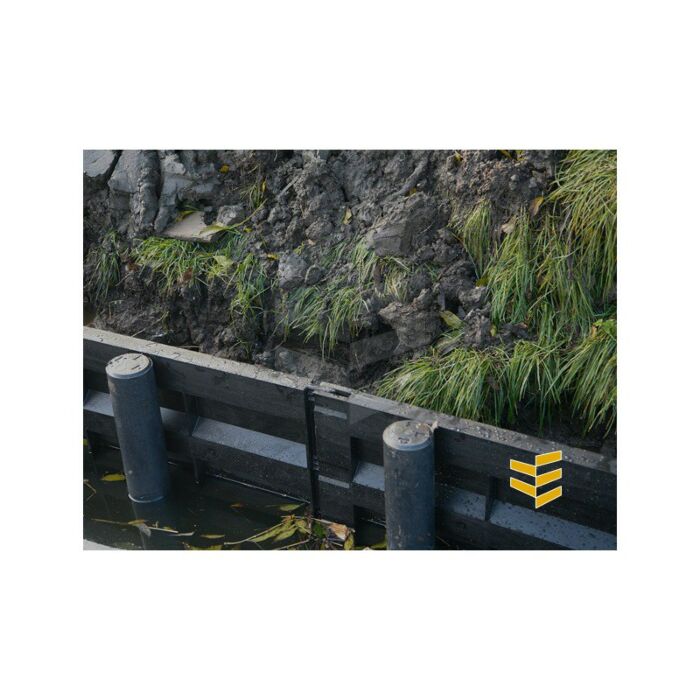 Kunststof beschoeiingspanelen. Door de hoge stijfheid kunnen de panelen met een kraan de grond ingedrukt te worden. De panelen kunnen in elkaar geschoven worden dmv een ijzersterke verbinding. Gewicht > 24 kg per paneel.