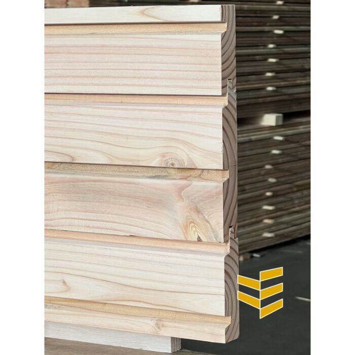 Bestel uw lariks/douglas rhombusprofiel hier. De werkende breedte is 132 millimeter. Dit is de berekeningsmaat. Lariks/douglas hout heeft een natuurlijke uitstraling en is bij ons in meerdere lengtes verkrijgbaar. Hoewel het Lariks/douglas hout onbehandeld is, is het toch geschikt als tuinhout. Het is kwetsbaar voor vocht, dus zwevend monteren is aanbevolen. Het hout is relatief goedkoop in vergelijking met bijvoorbeeld eikenhout. Het is daarnaast eenvoudig verwerkbaar hout en heeft een mooie warme kleur en egale vergrijzing.